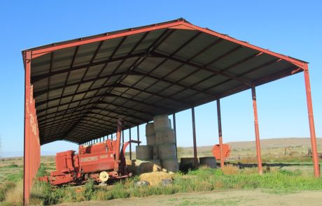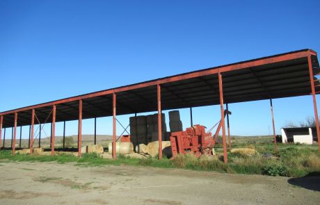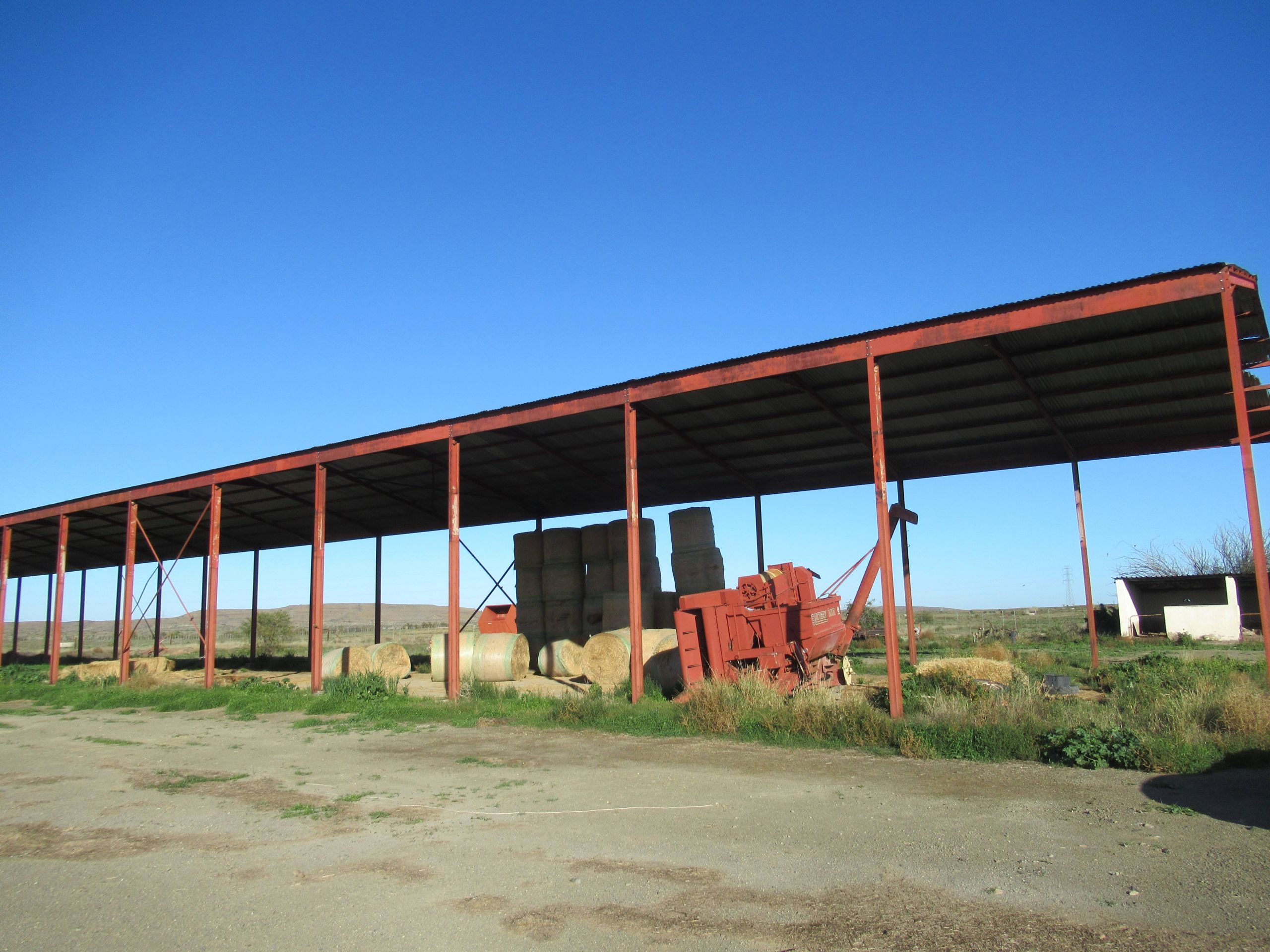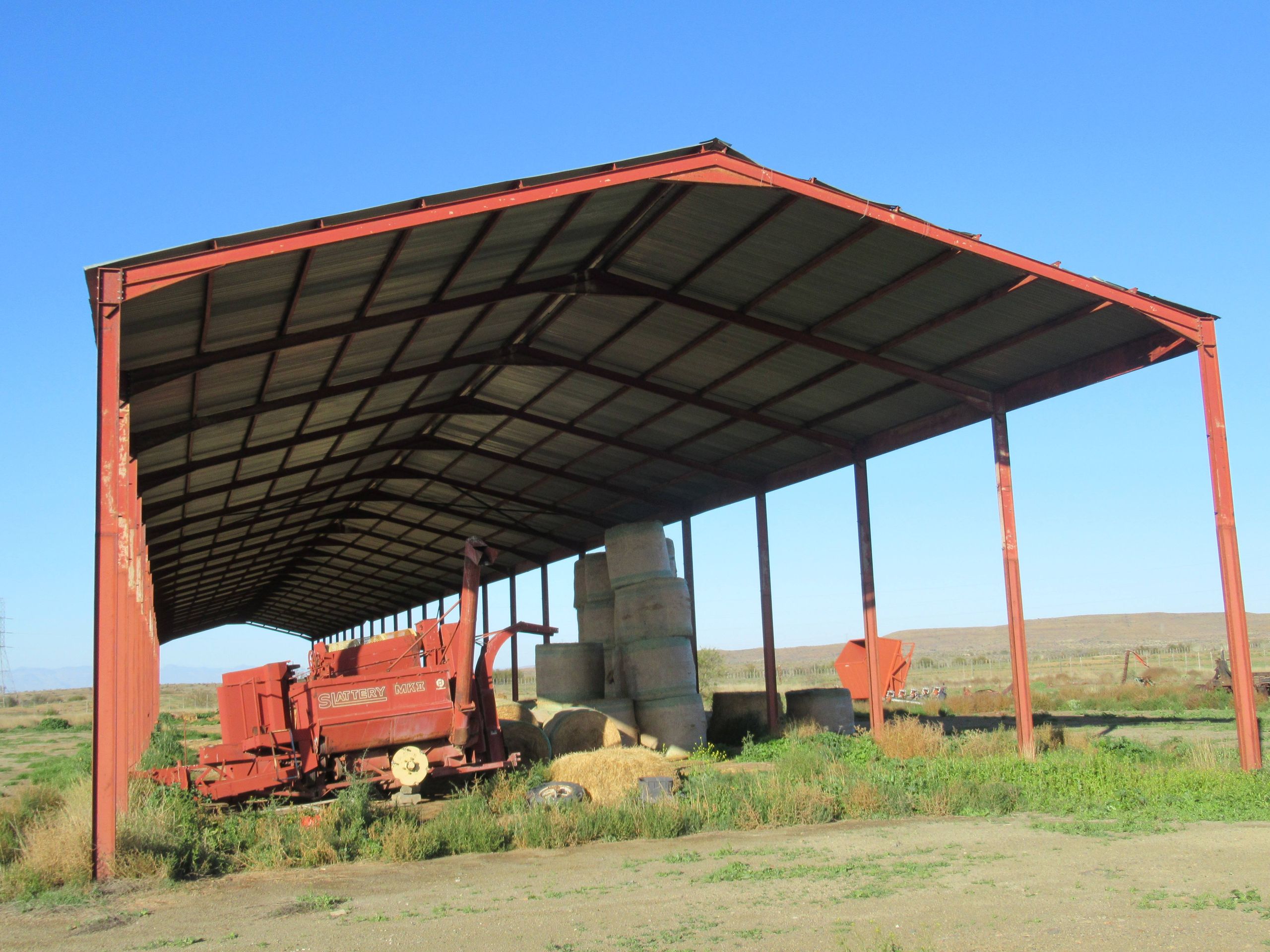There are two big stores with one being near the main house and one across the the road which also has a big shed for storing bales and equipment.